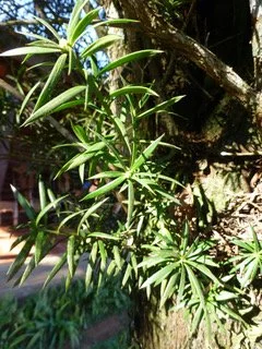 Sabina (Podocarpus angustifolius) is considered Critically Endangered, with only two locations in Topes de Collantes and Lomas de Banao, Sancti Spiritus. Total number of mature individuals in the wild is 160, although the effective population size is 80, assuming a 1:1 sex ratio, as the species is dioecious. Like mantequero, this species is a major structural species of the rainforests where it occurs; it may also be an important species for rainforest restoration as it grows relatively well in open areas.